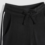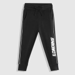 Black & white solid joggers with printed details, has an elasticated waistband with drawstring closure, 2 pockets and cuffed hems