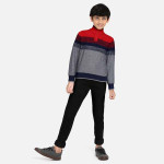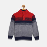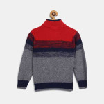 Boys Red & Charcoal Grey Striped Pullover Sweater