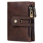 CONTACTS Men's Genuine Leather RFID Blocking Wallet (Brown)