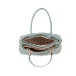2 main compartments, has a zip closure, 1 external pocket, 1 inner pocket