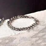 Black and silver-toned wraparound bracelet Material and stone type: alloy Plating Closure lobster closure