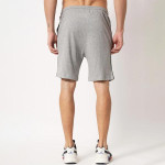 Grey solid mid-rise sports shorts, has 2 pockets, drawstring closure