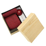 Craftsmen from the house of alvaro castagnino crafted this gorgeous gift set specially designed for men. This maroon colored gift set contains a sober microfiber self weaved necktie, matching pocket square and a lapel pin . It comes in a gift box which is adding extra class to this gift set and keeps it safe and dust free.