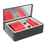 This accessory gift set consists of a tie, a pocket square and a pair of cufflinks Red and blue self-checked broad tie Red and blue self-checked pocket square A pair of red and silver-toned stone-studded circular cufflinks Comes in a Lino Perros box