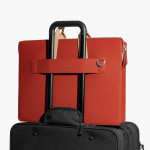 Easily stack and carry it on wheeled luggage using the backside sleeve that slips over extended luggage handles.