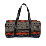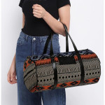 Unisex Black & Orange Printed Jacquard Spacious Weekender Travel Gym Duffle Bag