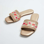 Detailed with an embroidered surface styling and open-toe design, this pair of flats is a chic and comfortable upgrade for your casual footwear collection.