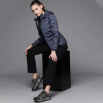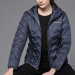 Women Navy Blue Reflective Strip Outdoor Puffer Jacket